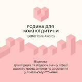 За ініціативи Координаційного  центру  з розвитку сімейного виховання та догляду дітей  (далі  –  Координаційний  центр) у  партнерстві  з Представництвом Дитячого фонду ООН (ЮНІСЕФ) в Україні, Благодійною організацією “Фундація Олени Зеленської” та громадською організацією “Центр соціальних змін і поведінкової економіки”, з метою підтримки та заохочення фізичних, юридичних осіб, органів державної влади, органів  місцевого самоврядування, їхніх представників, за вагомий внесок у розвиток батьківства, забезпечення зростання дітей у сімейному оточенні, зокрема, підтримку та розвиток сімейних форм виховання, послуг для  підтримки сімей з дітьми та забезпечення прав та інтересів дітей установлено відзнаку “Родина для кожної дитини” (Better Care Awards) (далі - відзнака).